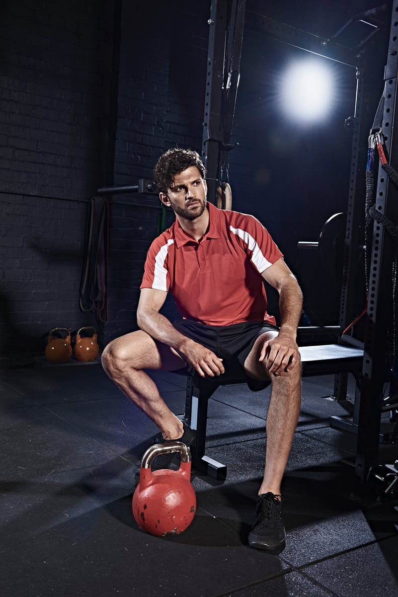 Heren sport polo met inzetstukken aan de voor- en achterkant van de mouwen en 3-knoopsluiting