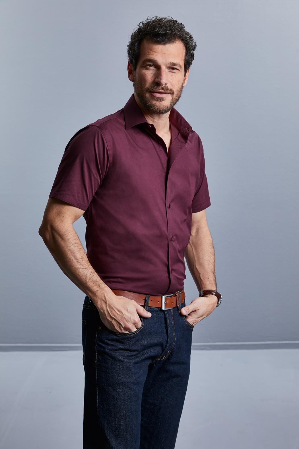 Heren overhemd met korte mouwen en uitgesneden kraag