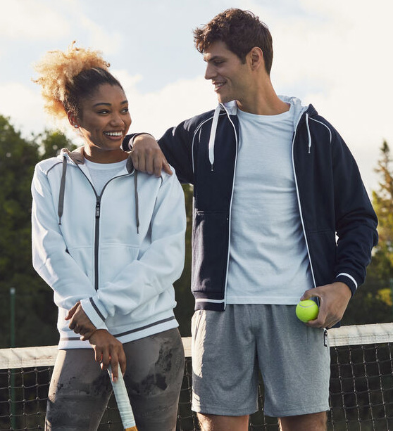 Unisex sweatjack met dubbele capuchon en doorlopende ritssluiting