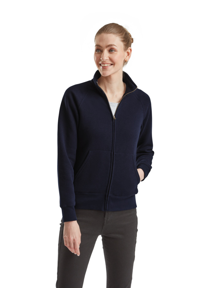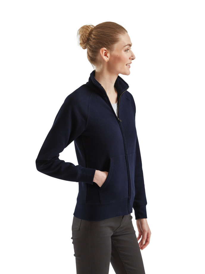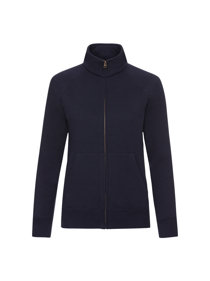 Dames sweat vest met doorlopende ritssluiting en ribboorden bij de manchetten en onderzoom