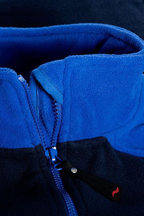 Unisex polarfleece jack met doorlopende ritssluiting en schouderstuk in contrastkleur