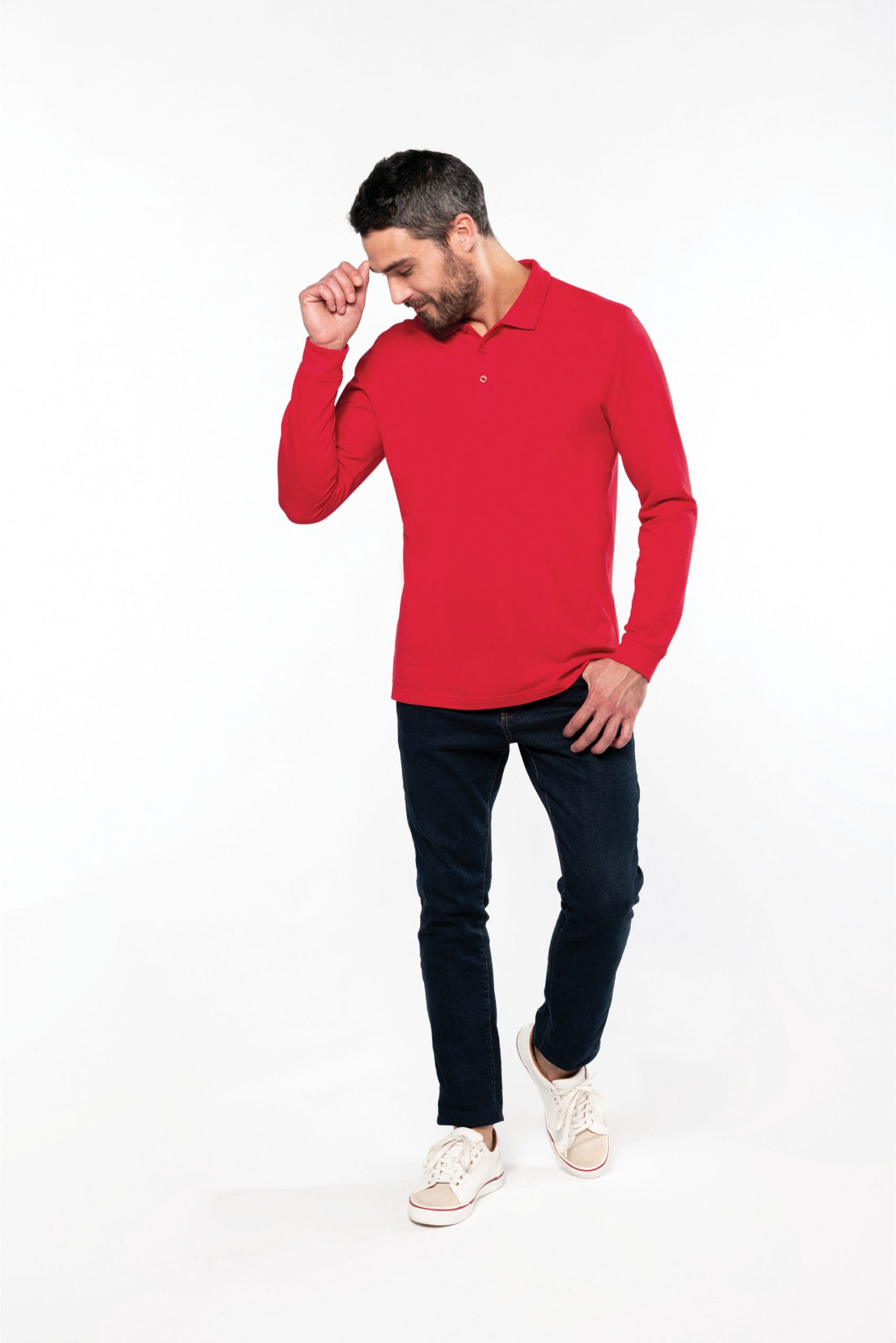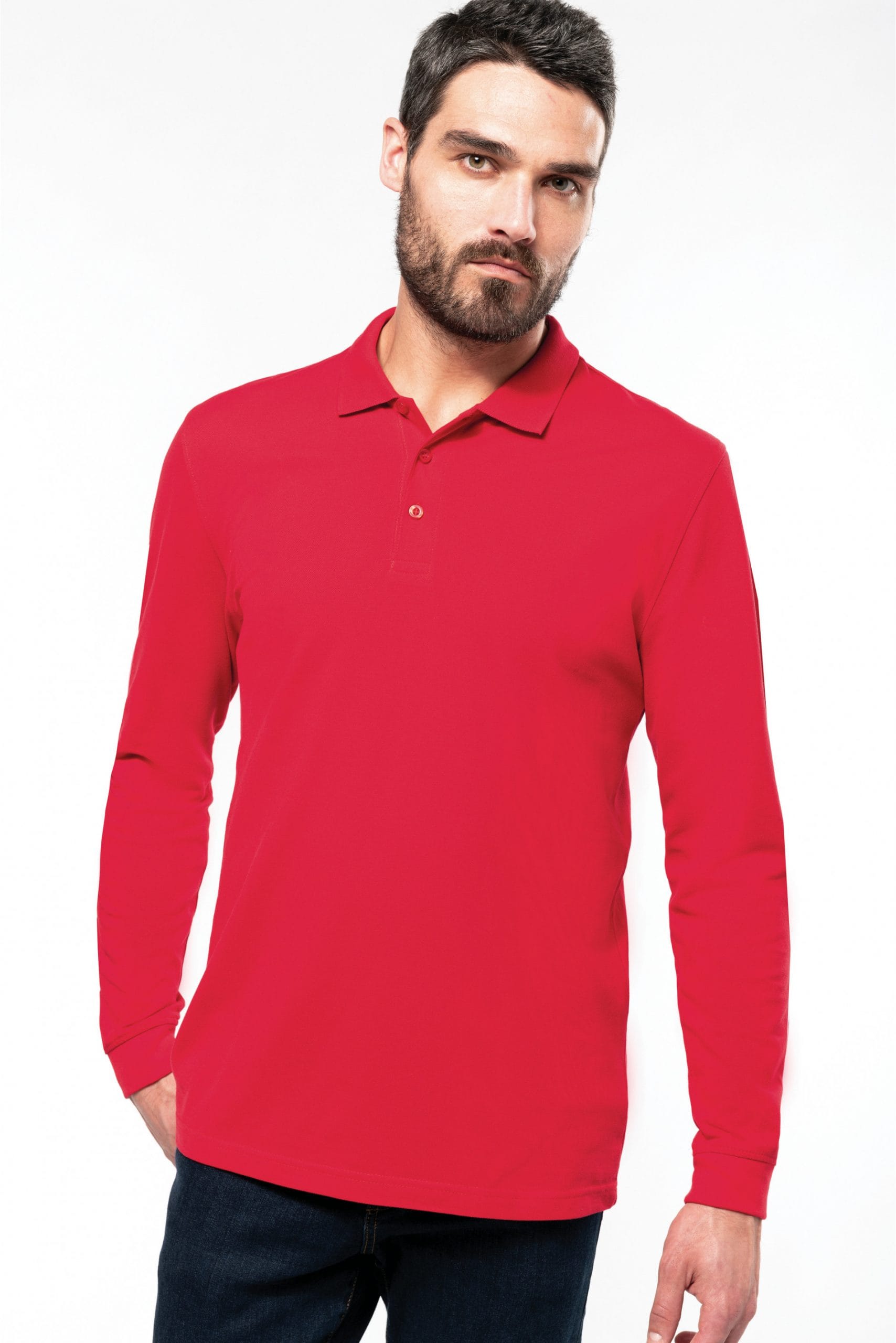 Heren polo met lange mouwen en polo kraag