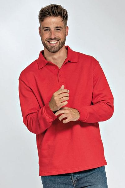 Heren polosweater met ronde hals, 3-knoopsluiting en losse tailleboord