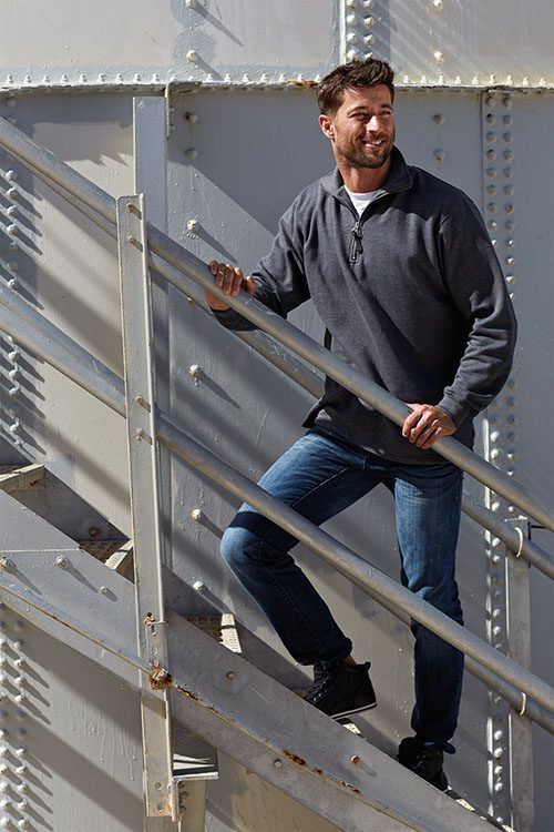 Unisex sweater met korte metalen ritssluiting en opstaande kraag