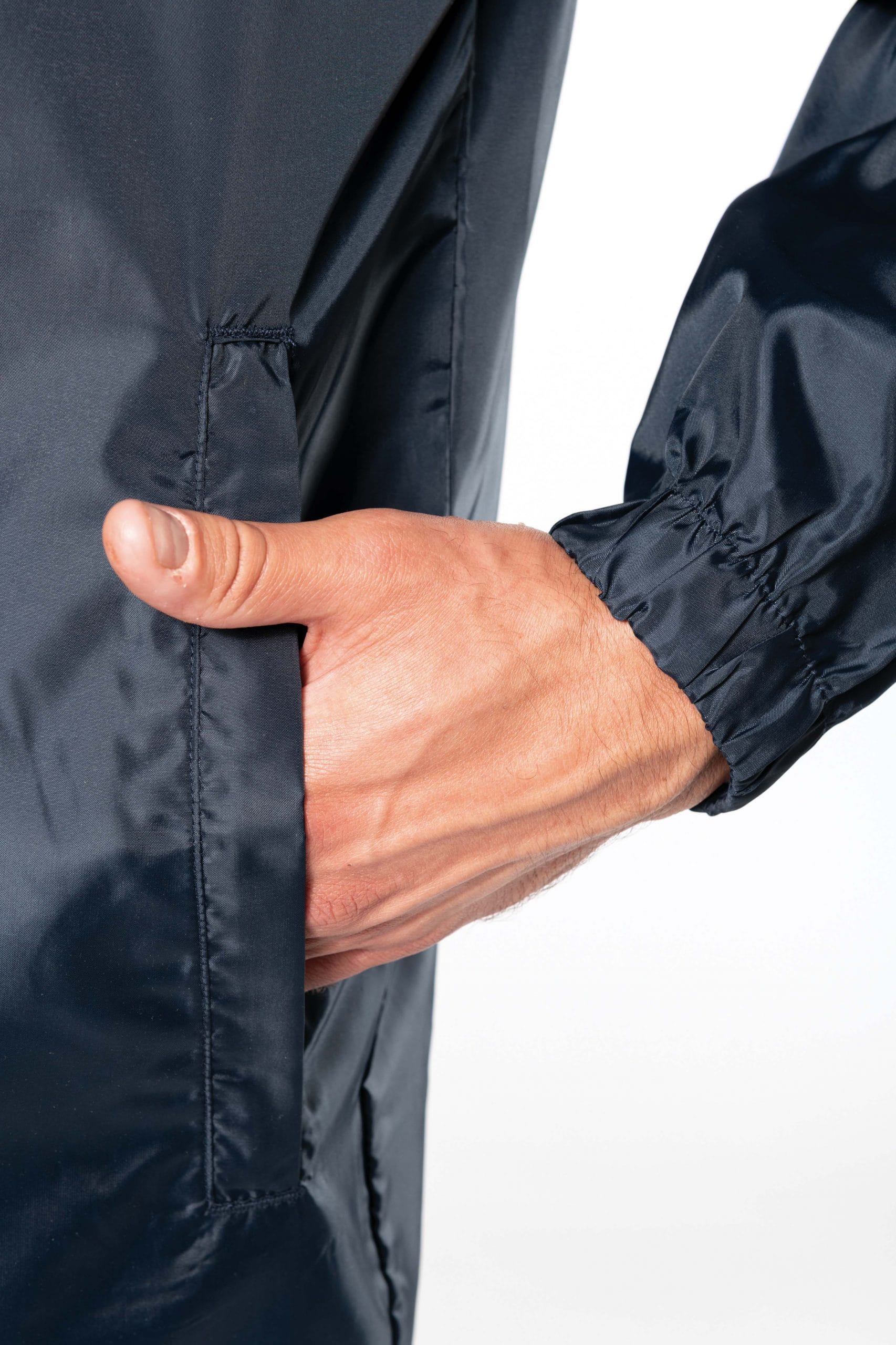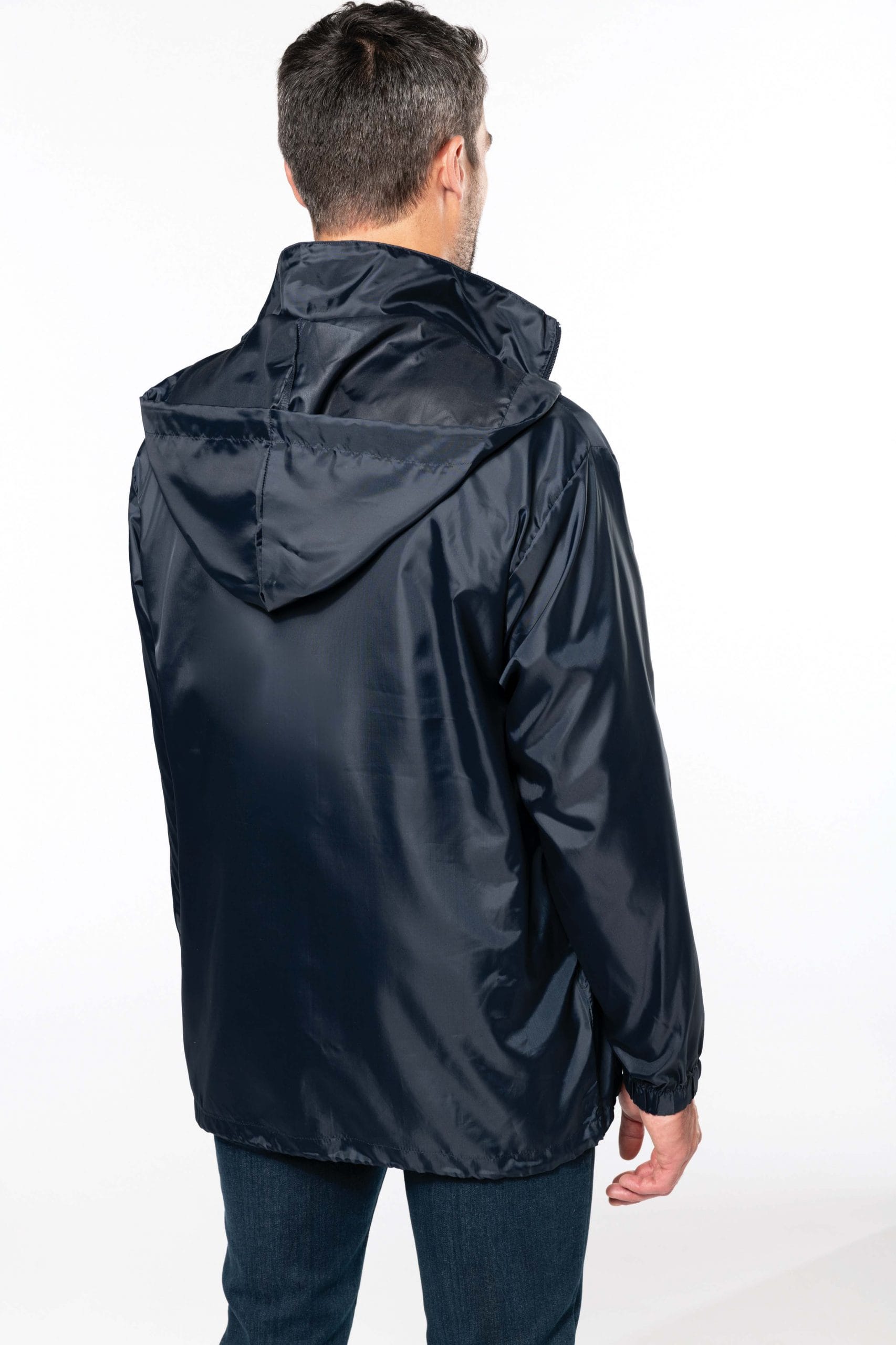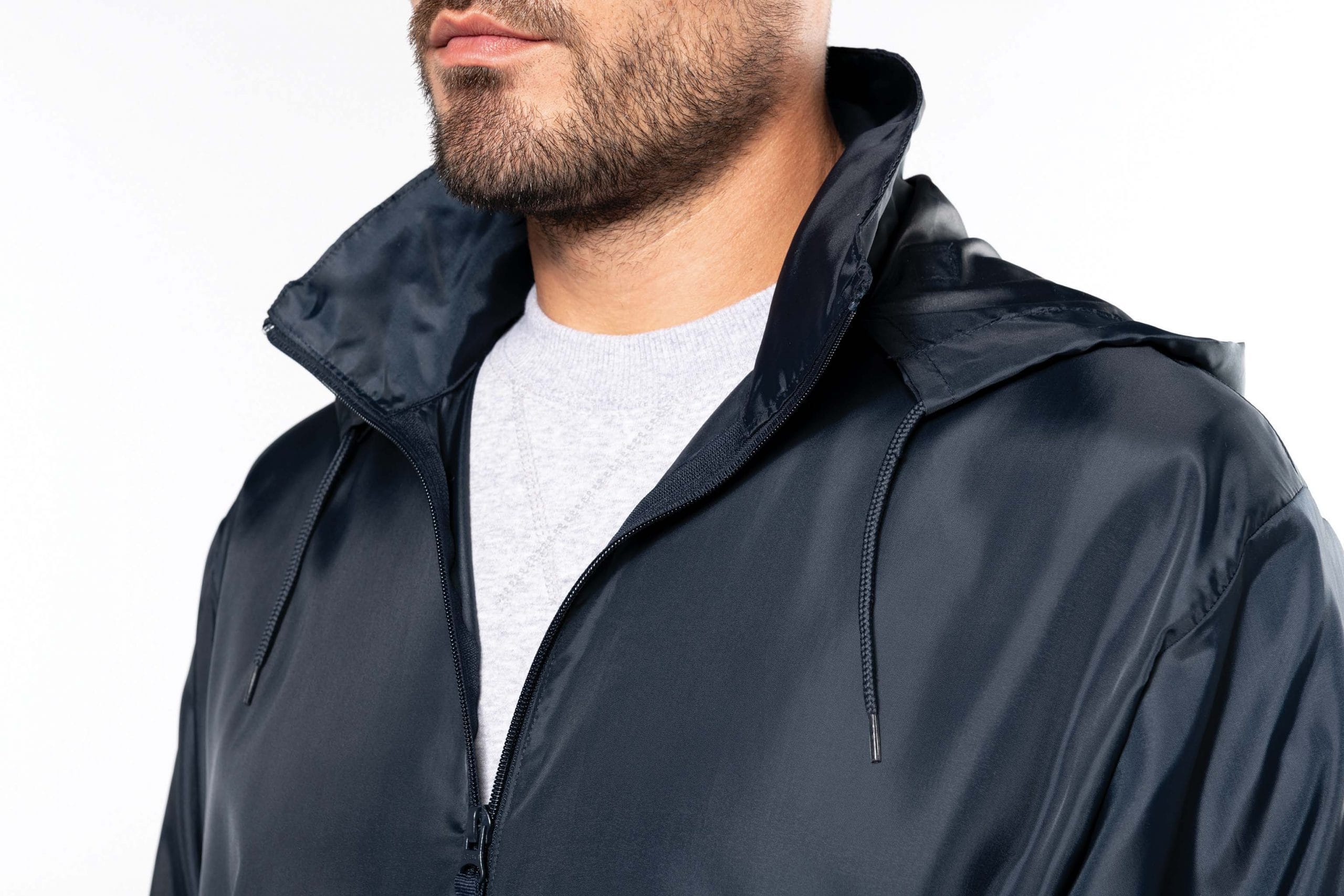Unisex windbreaker bedrukken met verborgen capuchon in de kraag.